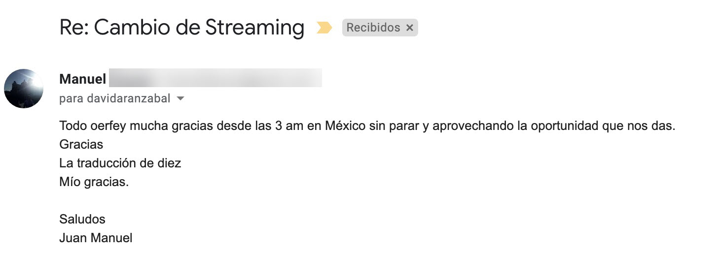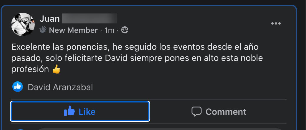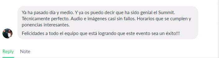"Enhorabuena por el evento... es muy difícil y lo estas consiguiendo"
