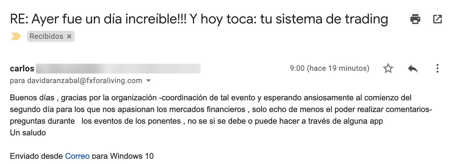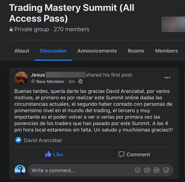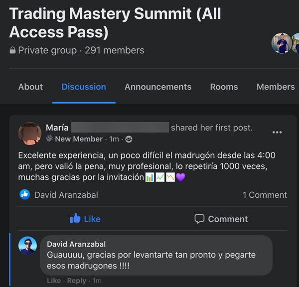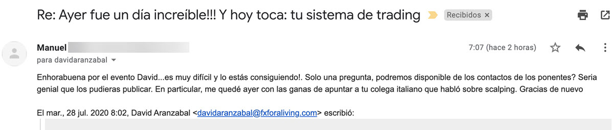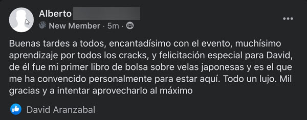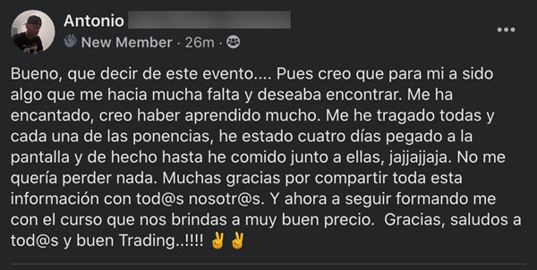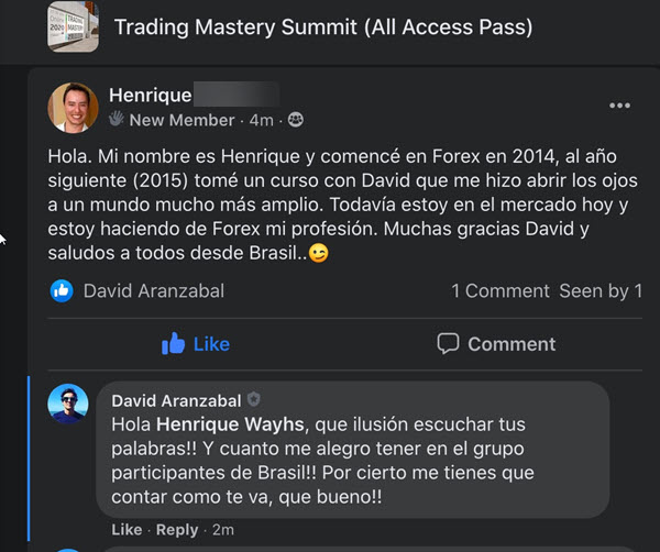 “He venido desde Colombia para verles. Si no fuera por David no estaría aquí, y ya llevo 4 años haciendo trading.